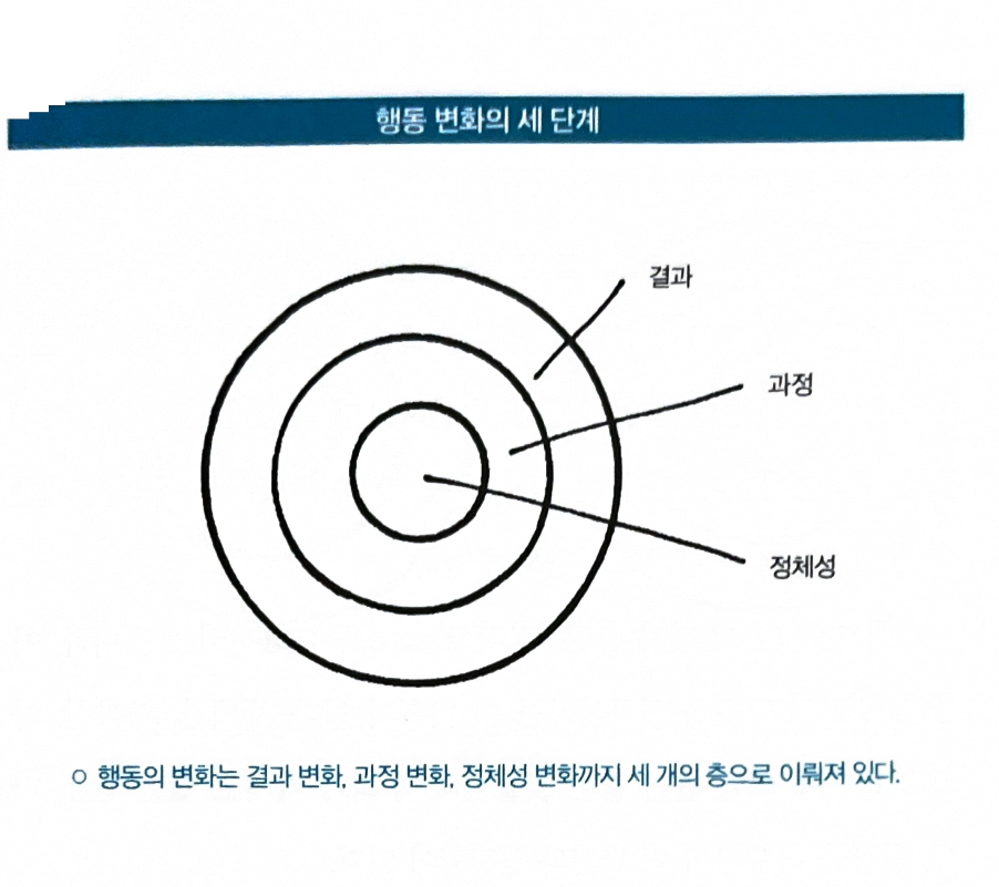 무슨 말이냐면 “나는 살을 빼서 예쁘거나 잘생겨질거야”와 같이 결과를 바라며 시작한다. 그러나 저자는 정체성을 먼저 형성하고 결과를 나중에 얻는것이 습관 형성에 유리하다 말한다. 담배를 끊고 싶다면 “저는 담배 끊었어요” 보다는 “저는 비흡연자입니다”와 같이 자신의 정체성을 변경하는 것이다. 이렇게 하면 내가 "그 행동을 해야지" 라고 생각하지 않아도 나는 그 행동을 하는 사람이기에 자연스레 습관이 형성 된다. 습관은 내가 무언가를 얻기 위한 것이 아니다. 습관은 어떤 사람이 되는 일이다.